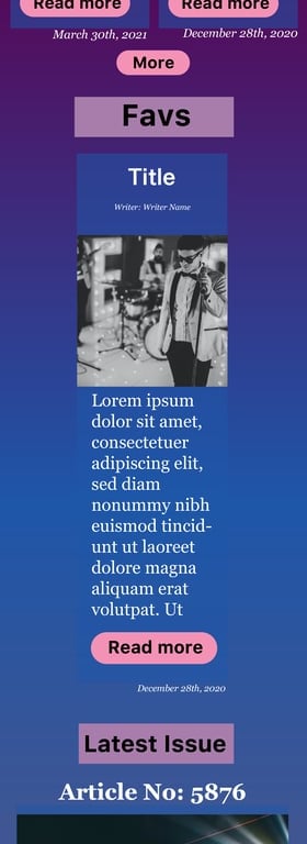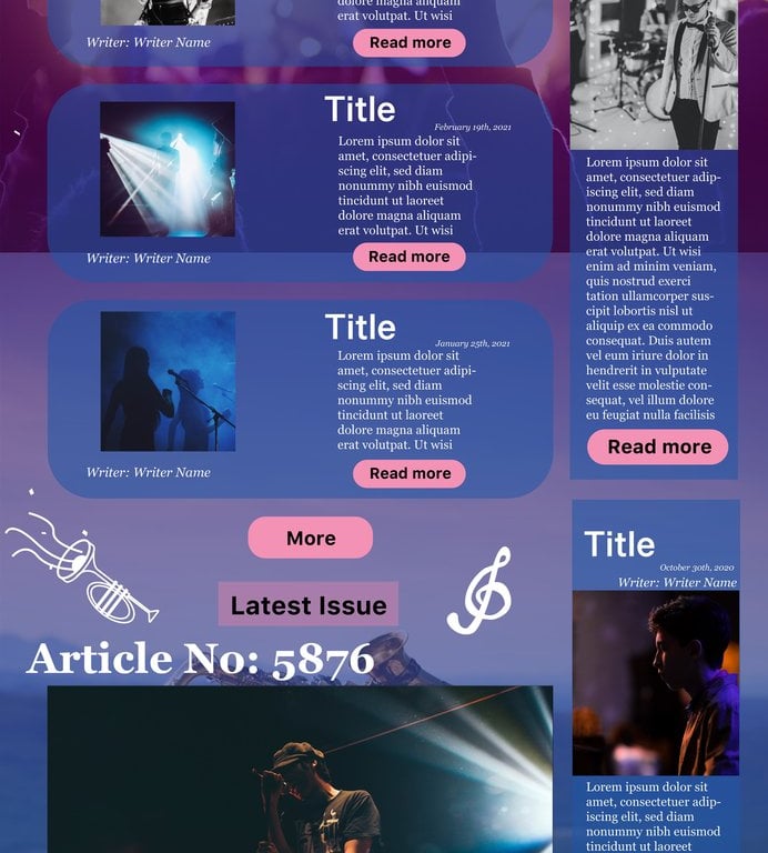 Due to the limitations and negative impact of the website’s previous design, our goal was to reimagine the music magazine’s brand with a more stylized and interactive approach. The updated design features a cohesive color palette and modern typography, creating a visually engaging and contemporary experience.