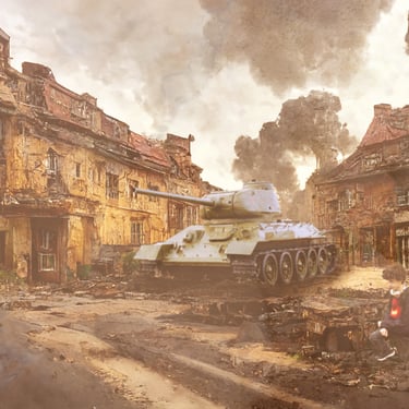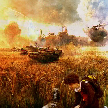 Each image tells a chapter of his story, illustrating not only his effort to walk away from the horrors and violence of war, but also his quiet coexistence with a world overshadowed by darkness. As he moves through open fields and fractured towns—some serving as fragile safe havens, others devastated by tanks and warplanes—we witness the emotional and physical toll of a world in ruin.